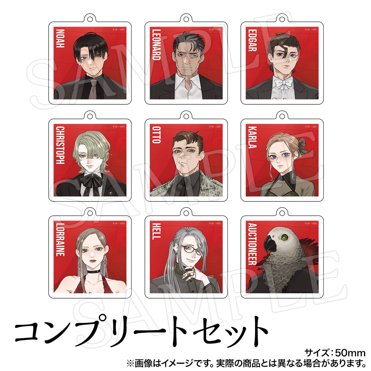 こちらはコンプリートセットとなりますので別途販売しておりますトレーディングアクリルキーホルダー全9種をセットでお届けいたします。